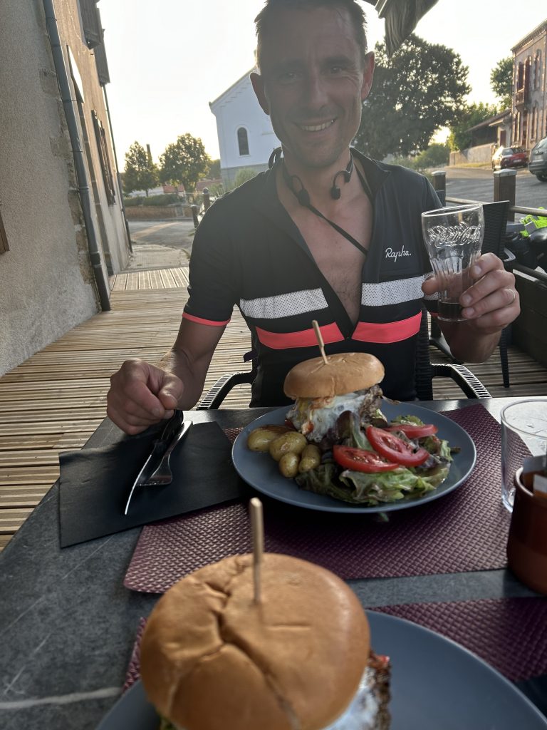 Ce sera un burger pour chacun. Nous prenons notre temps, nous récupérons de cet après-midi passé à rouler sous la chaleur. Nous n’avons pas de contrainte car nous n’avons rien réservé pour la nuit. Avec ce beau temps, la nuit sous les étoiles, devrait être agréable.