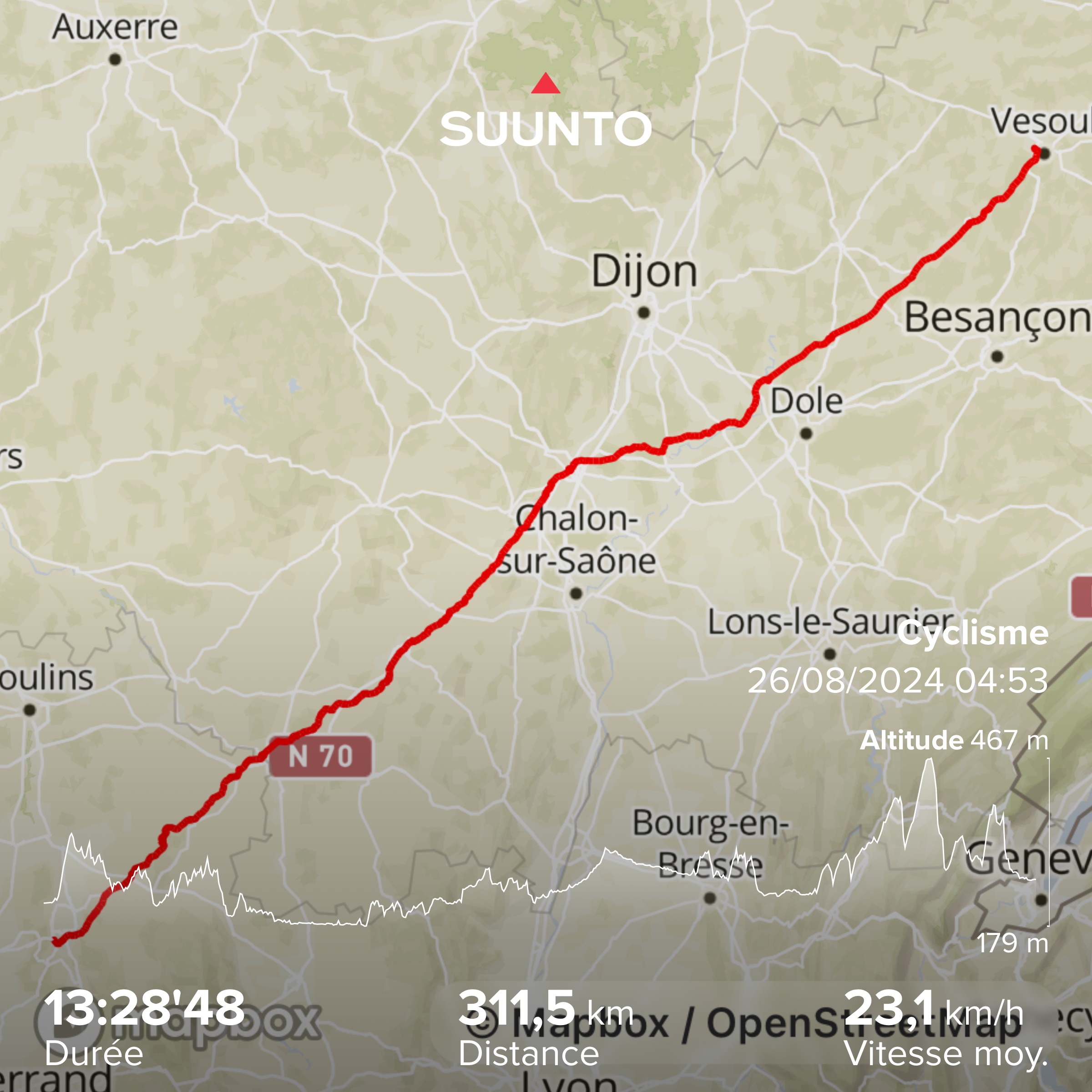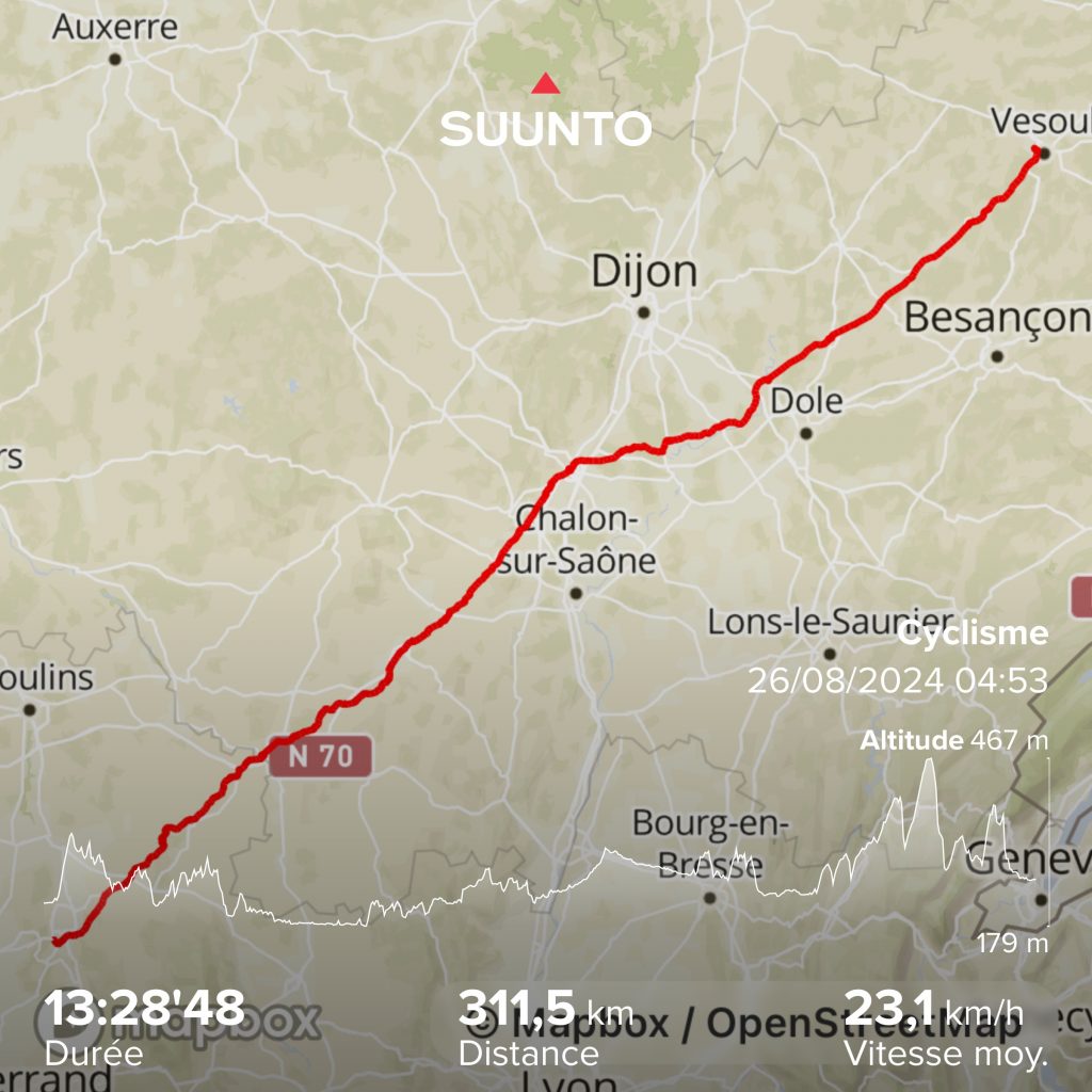 Nous quittons Remiremont en escaladant le dernier col de la journée, le col du Peutet ( 610 mètres). Le massif Vosgien est passé, après le val d’Ajol, nous atteindrons Vesoul vers 23 heures, le terme de notre première étape. 204 km D+ 1 964