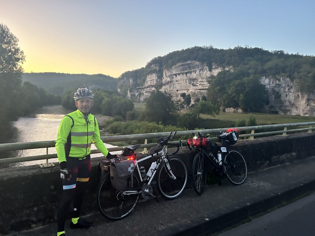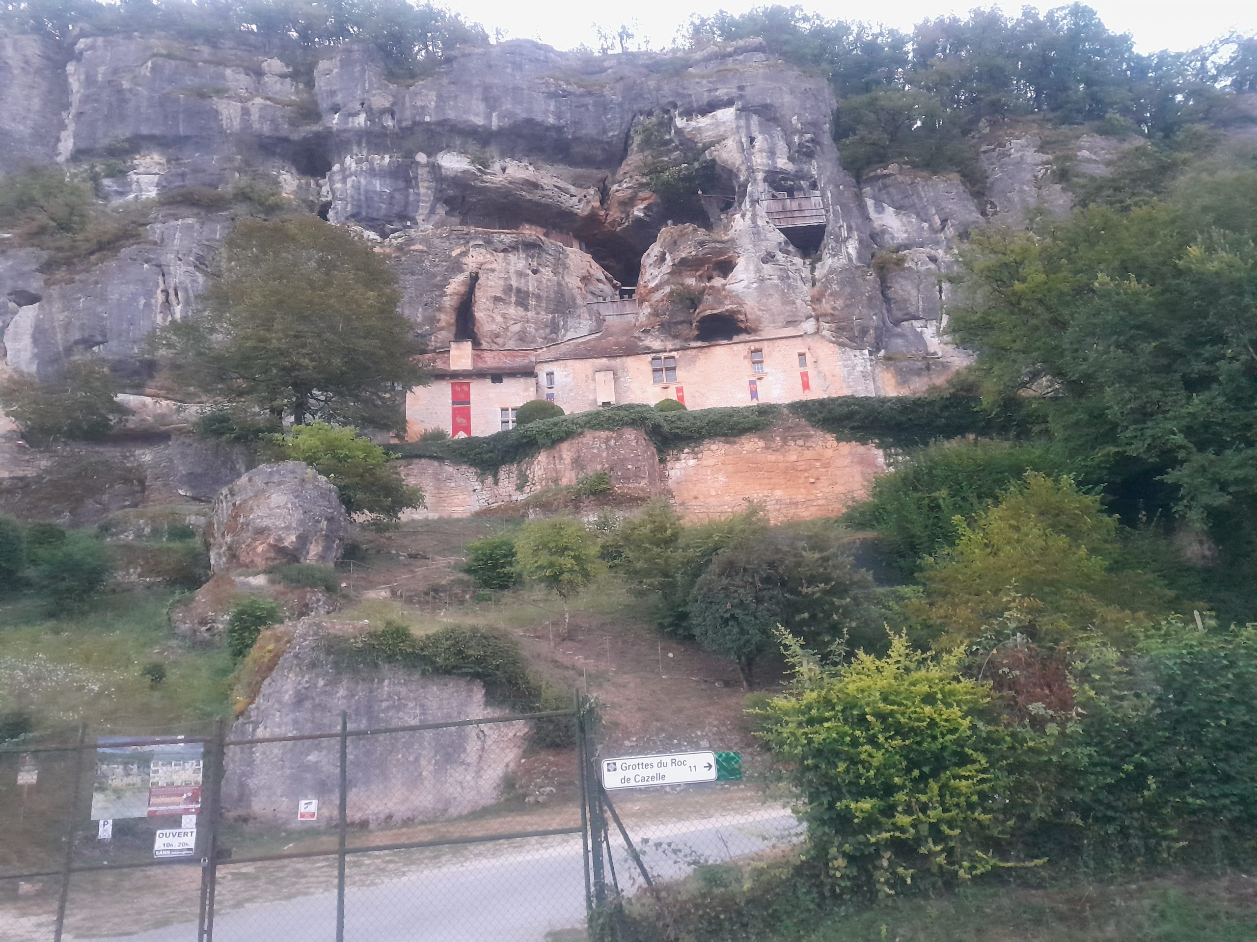 Pour ce début d’étape, départ 5h30 ,nous allons longer la Vézère. Il fait encore nuit lorsque nous passons à Montignac Lascaux, ce qui ne nous permet pas de profiter des paysages. Le jour se lève enfin et nous traversons la Vézère au niveau de La Roque Saint Christophe , nous passons ensuite devant plusieurs sites troglodytes : rocher de peine,…