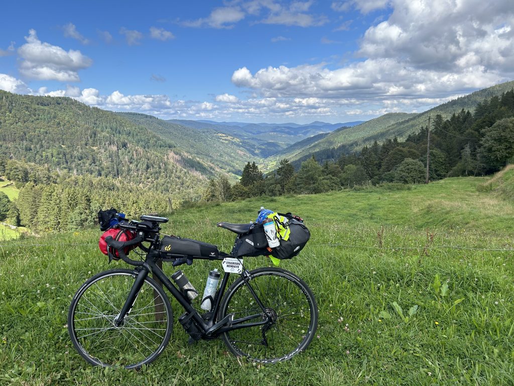 Côté matériel, j’ai été influencé par les réseaux sociaux et la mode du Bike-packing. Ma sacoche de selle n’est pas adaptée à ma pratique itinérante. J’ai effectivement constaté que des sacoches latérales disposées à l’arrière sur porte-bagages sont bien plus pratiques. Tout est accessible facilement (Merci Gwénaël !). Cela permet de compartimenter vêtements/couchage/alimentation et simplifie nettement les arrêts.