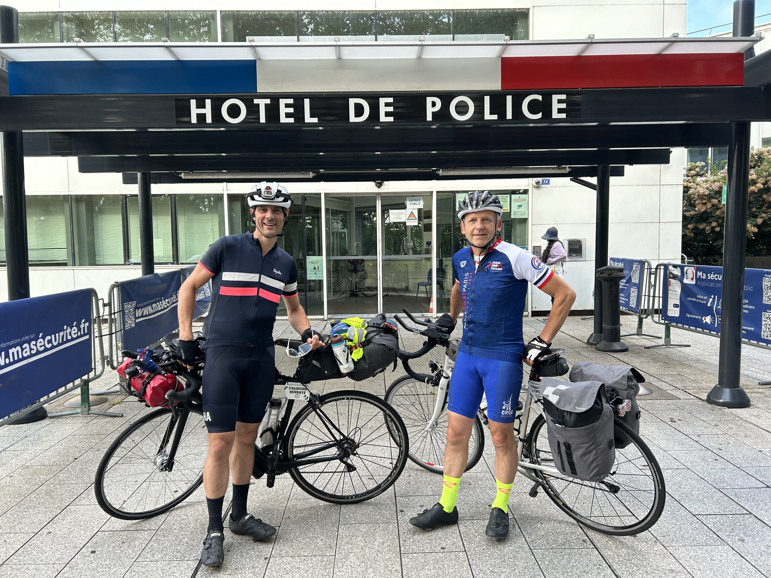 Cette photo à 11h00 devant l’hôtel de police signe notre départ pour cette longue aventure au travers de notre territoire.