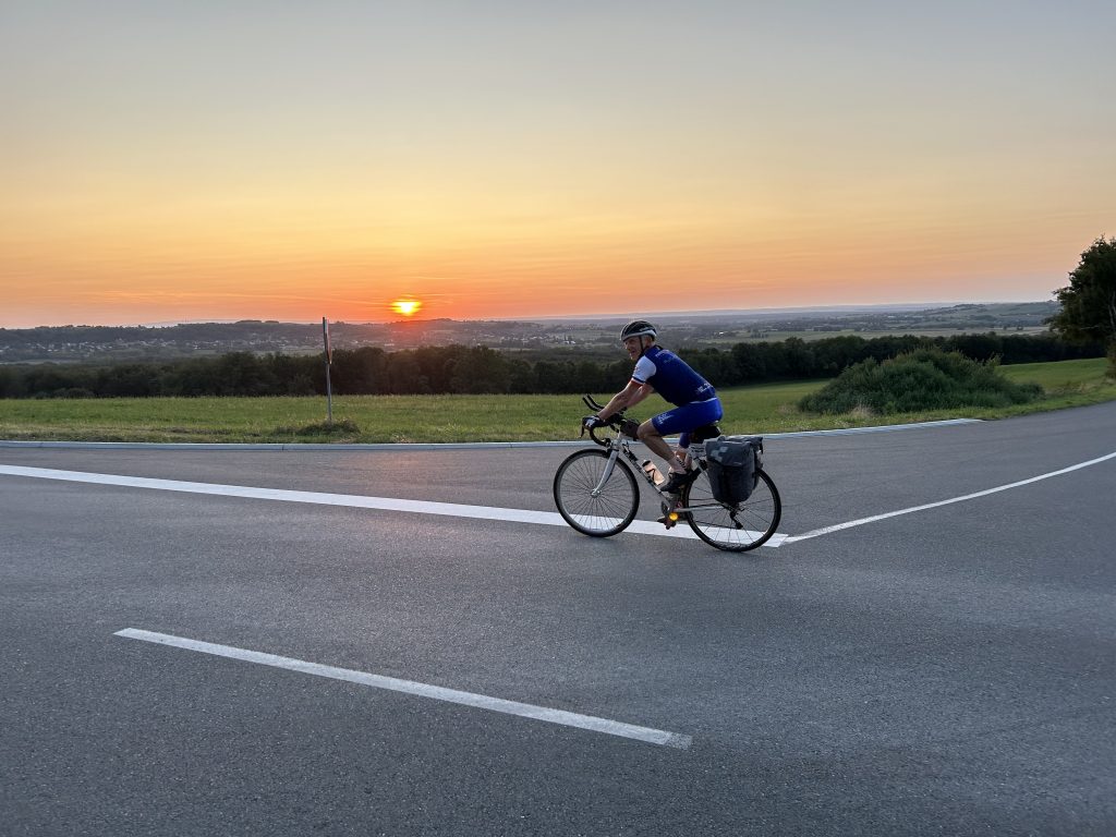Le soleil se lève aussi et je retrouve partiellement un itinéraire emprunté en vélo lors d’un séjour famille en 2021. J’ai également découvert ces routes pendant nos vacances en cyclo-camping dans les années 90 avec Papa, Maman et Katy. Initié jeune à l’esprit cyclo, cette Diagonale en est un prolongement. Certes plus sportif ! Mais le fond n’a pas changé. Toujours cette sensation de liberté, hors du temps, l’esprit déconnecté (mais pas le téléphone…), dans le simple but de (re)découvrir de nouveaux paysages.