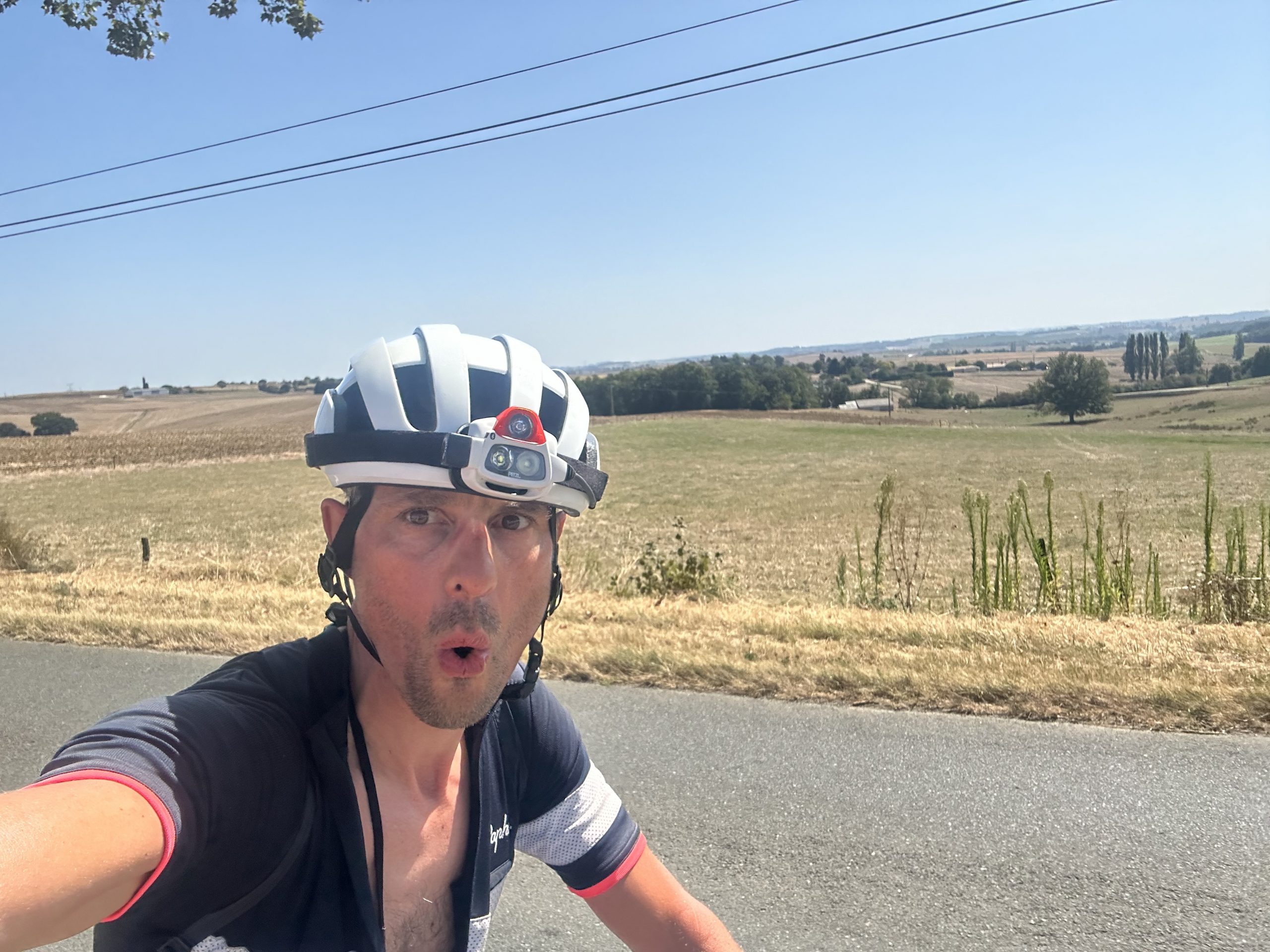 La météo est chaude et la crème solaire est appliquée par sécurité. Le problème pneumatique est loin derrière, cependant, un problème en amène un autre. Les kilomètres défilent et je commence à ressentir des douleurs aux fessiers. Fait rare ! Cela m’inquiète.
