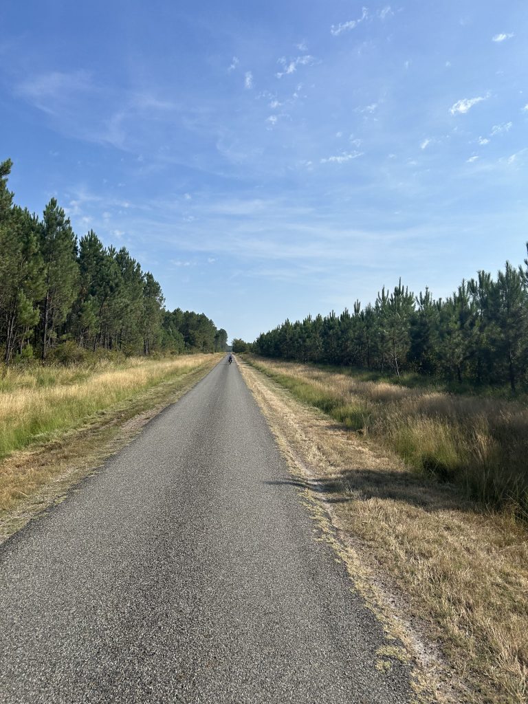 Nous repartons paisiblement. Nous poursuivons notre route. Les températures sont descendues et nous allons pouvoir profiter cette fraîcheur nocturne pour traverser ce massif landais. Tout est calme autour de nous. Pas de bruits sur ces routes de campagne. Dans la nuit, l’ouïe et l’odorat sont bien stimulés et en éveil.