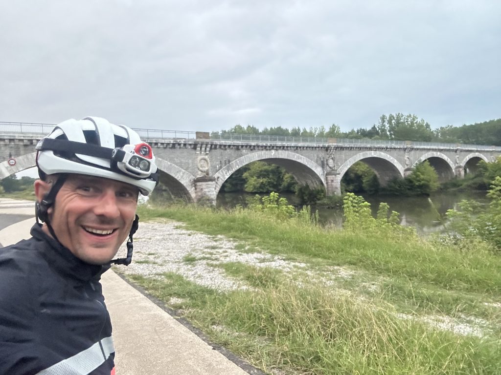 Nous arrivons sur Marmande et traversons la Garonne sur bel ouvrage d’art. Il est 14h00. 2h00 heures après notre feuille de route.