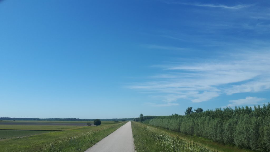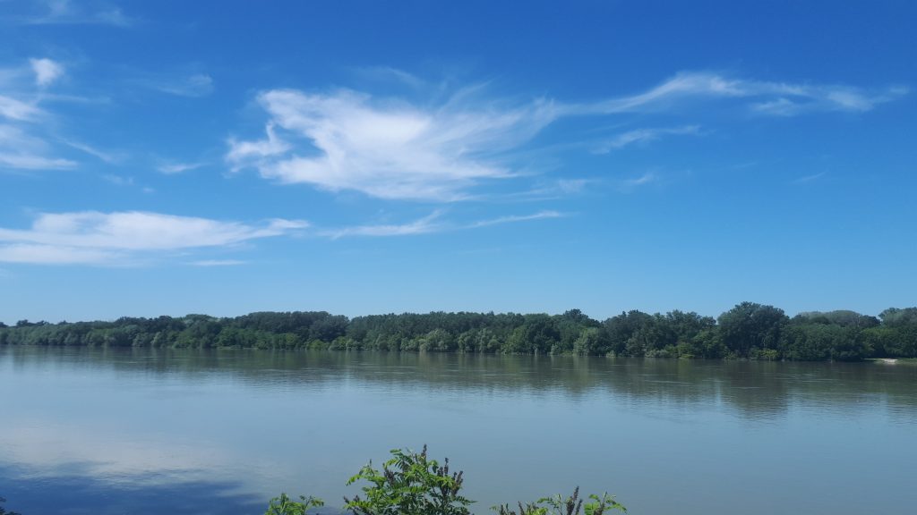 Sur les 30km je verrais 1 cycliste, un scooter et 10 voitures. Un rideau épais de peupliers me cache le Danube. Je constate, dans un rare accès au fleuve, que l’endroit est infesté de moustiques. Sur ma gauche ce sont des champs de blés mûrs à perte de vue. La rive droite est pour lors occupé par le Parc National Duna-Drava.