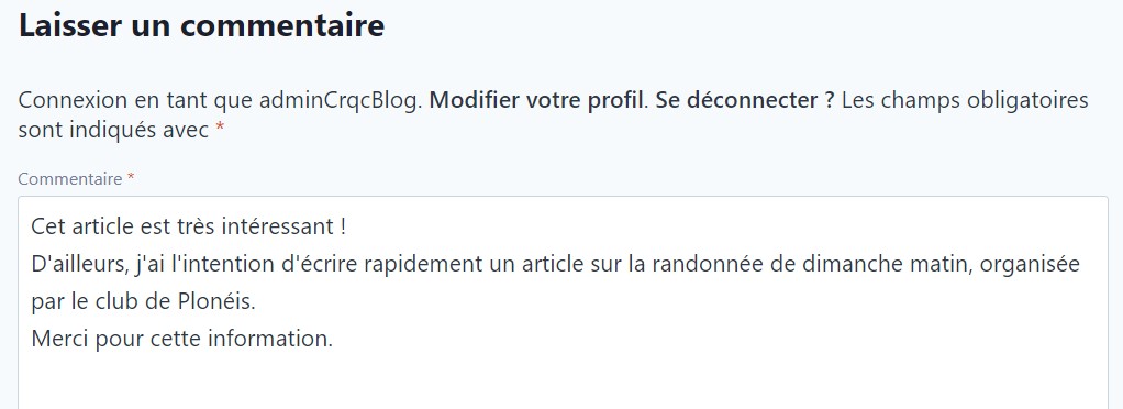 Tout en bas de l’article affiché, on trouve un champ dans lequel on peut écrire son commentaire. Sans connexion, ni mot de passe ! On peut même l’écrire de son téléphone portable !